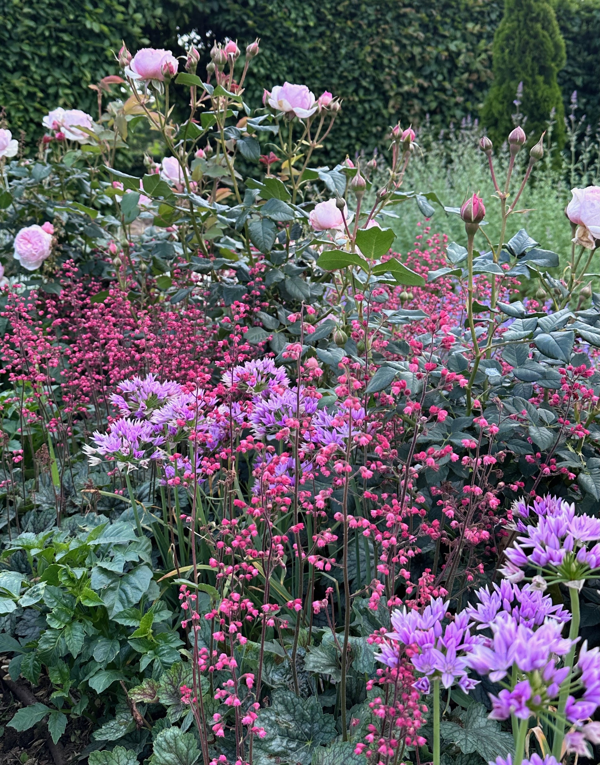 Versatile and reliable, Heuchera thrives in both full sun and dappled shade, making it equally at home in a bright border, woodland planting, or even as a groundcover under roses and shrubs. At Oasis Cottage, we use it in both the Blue Garden (sunny) and the Woodland Garden (shaded), where it performs beautifully.